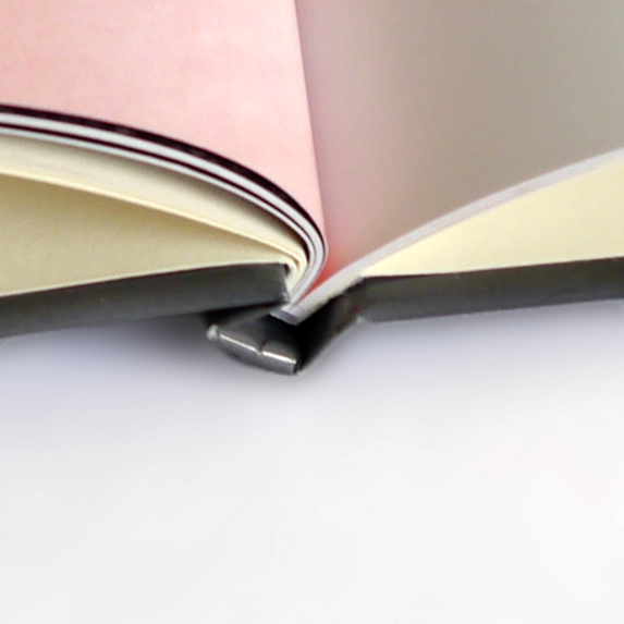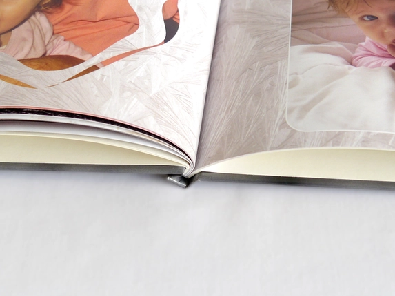 The binding of a hardcover photo book