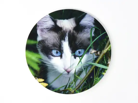 Give your picture a unique appearance by printing your photo on a circle. It’s an easy way to create a special collage of your favourite images. The round format is available in five standard sizes and looks stylish in any room.