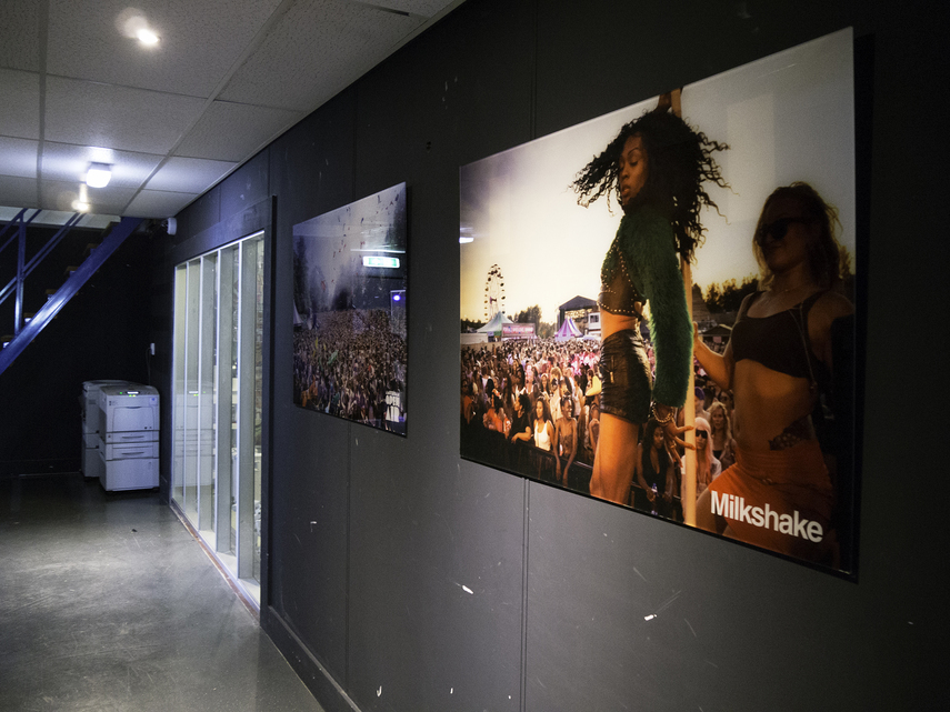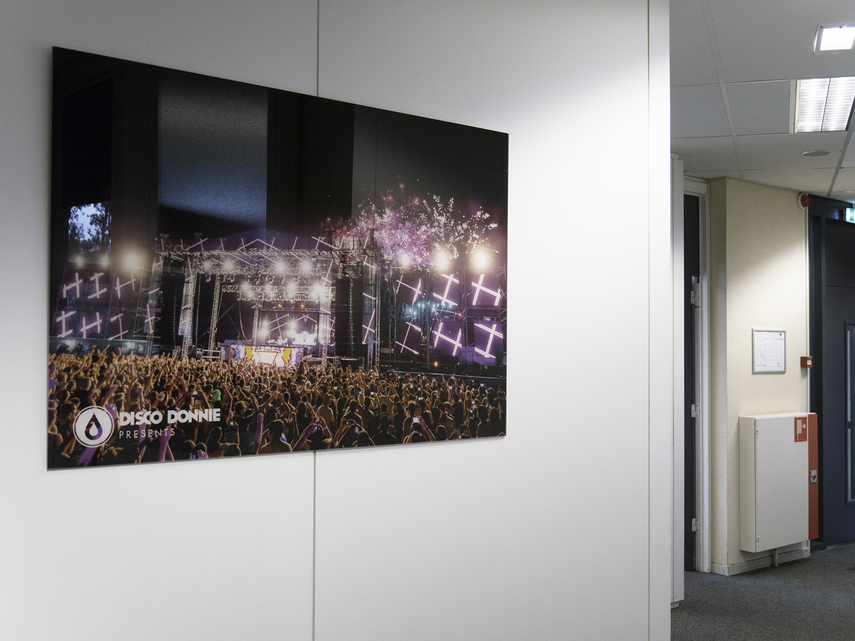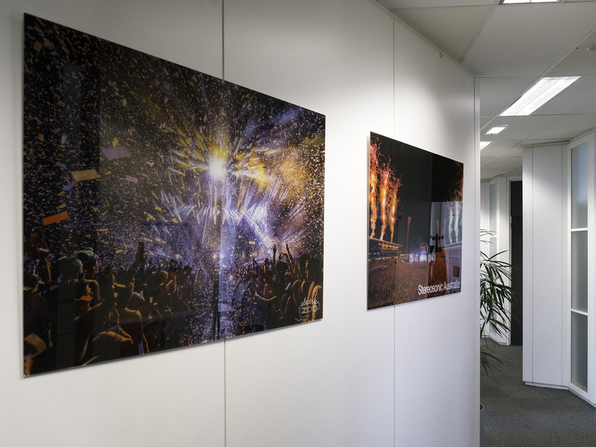 foto's op plexiglas sieren de wanden van het pand en sluiten perfect aan bij de uitstraling van dit bedrijf.