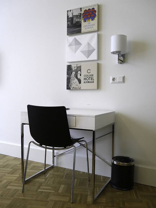 Dit unieke hotel is gesitueerd in een oud schoolgebouw. Het gebouw stamt uit 1927 en is gebouwd in de "Amsterdamse School" stijl. In samenwerking met ontwerper Iris Kauffman, www.ontwerpstijl.nl, heeft Fotogeschenk een flink aantal prachtige opgespannen canvassen geleverd, ter decoratie van de gangen en kamers van dit hotel. Kijkt u maar eens hoe mooi beeld en gebouw op elkaar afgestemd zijn!