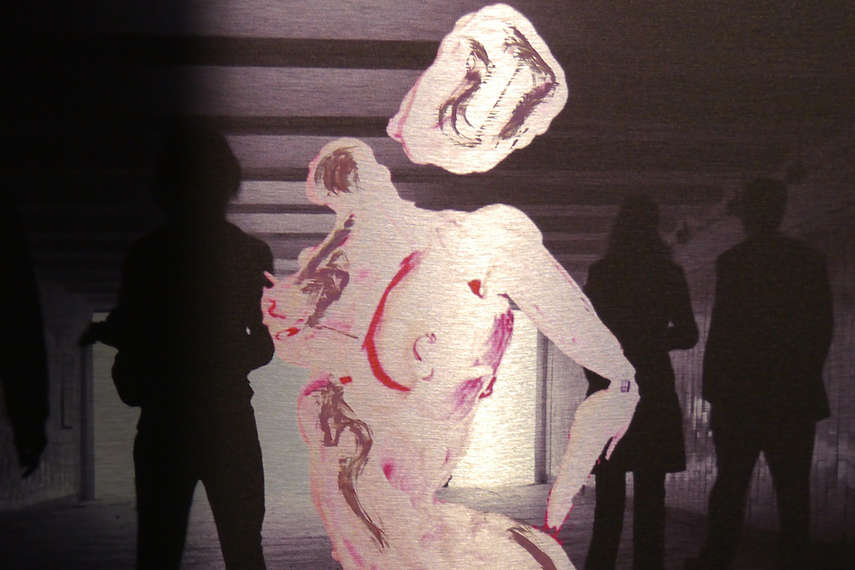 De manier waarop zij haar werk tentoonstelt is bijzonder passend bij de titel van de expositie: Door de gekozen raster-hekken zie je voor- en achterzijde van haar werk, en ook schemeren de kunstwerken van de beide andere kunstenaars door haar werk. In één blik worden de verschillen in materiaal en beeldtaal duidelijk. Een letterlijke verbinding, synergie, dus, die spreekt tot de verbeelding.