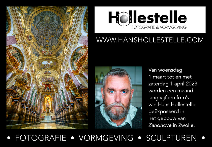 Sinds woensdag 1 maart 2023 is een maand lang een serie van 15 van de prachtige foto's van fotograaf Hans Hollestelle te zien in verpleeghuis Zandhove, Hollewandsweg 17, 8014 BE Zwolle. Vervolgens zal deze zelfde expositie van 15 foto’s vanaf zaterdag 1 april een maand lang te zien zijn in verpleeghuis de Vijverhof, aan de Vijverhof 19, 8265 GJ Kampen.