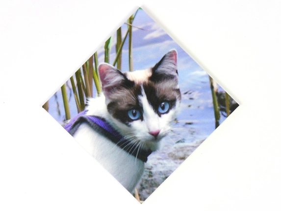 A photo in diamond shape gives your image a striking look. It’s easy to create a unique wall collage of diamond prints. Each diamond print is produced on forex and available in five different sizes.